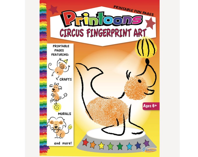 CIRCUS BOOK & POSTER Fingerprint Art, Circus Worksheets, Circus Digital Download Fingerprint Art Kit, Circus Diy, Kids Circus Party Craft